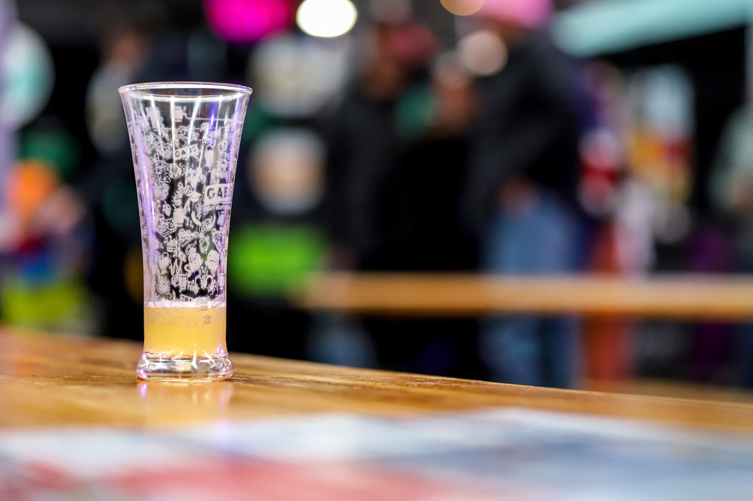 Nelle vicinanze, i bicchieri da birra sono precariamente bilanciati per un gioco chiamato “Knock ‘em Over”.